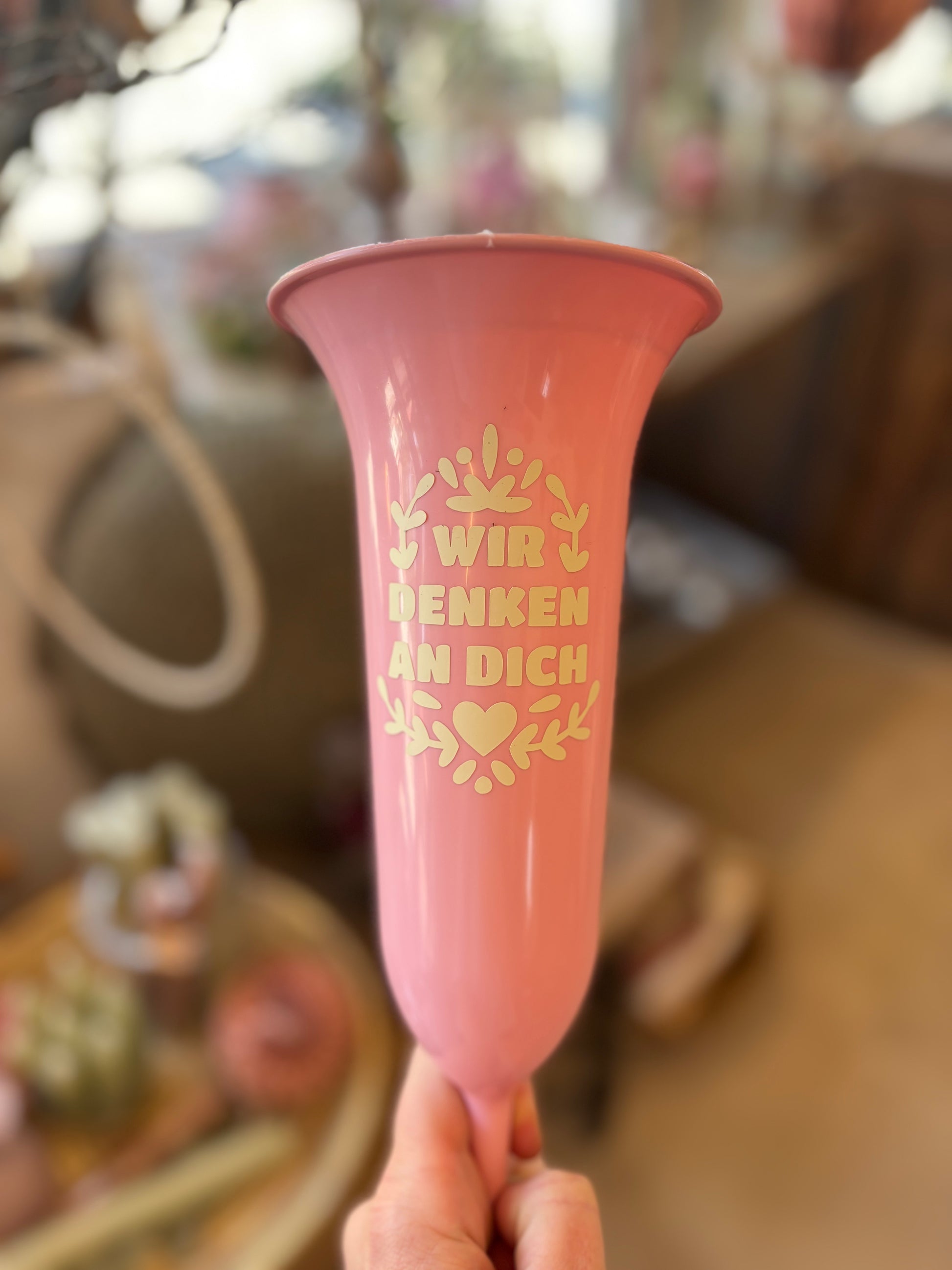 Grabvase aus Kunststoff in alt Rosa beige Schrift ''Wir denken an Dich"